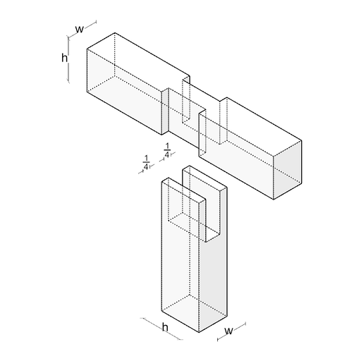 Joint family: tenon (Zapfen), shoulder (Hals) Joining principle: rigid interlocks