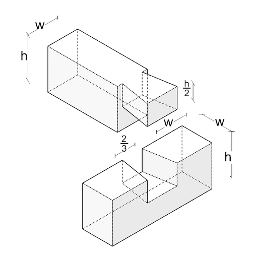 The dovetail half lap joint offers high tensile strength and self-locking properties without additional fasteners. The connection is positive and resistant to withdrawal. Manufacturing requires precise fitting and craftsmanship skills. The dovetail-shaped expansion leads to considerable cross-sectional weakening, especially with large cutouts. The connection is prone to splitting along the grain if the angle is too acute.