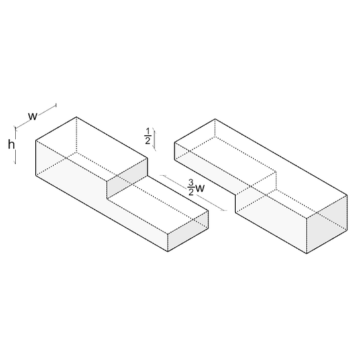 In execution, both members are notched exactly to half their thickness over a defined length. The notches are mirror images, so that upon assembly a continuous, flat surface is created. The overlap length typically measures two to three times the member thickness. The characteristic feature is the symmetrical weakening of both members, ensuring uniform load distribution.