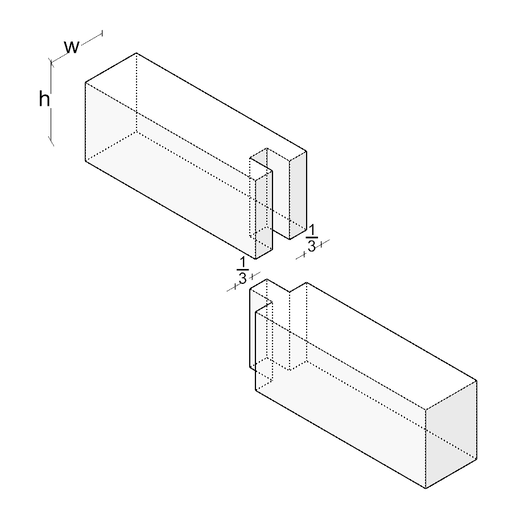 Traditionally, this joint is used in structural timber construction for sills, purlins, and other longitudinal connections where precise positioning is important. In furniture making, it finds application in high-quality frame connections and door or window frames. It is particularly suitable for interior construction applications where both stability and visual quality are required.