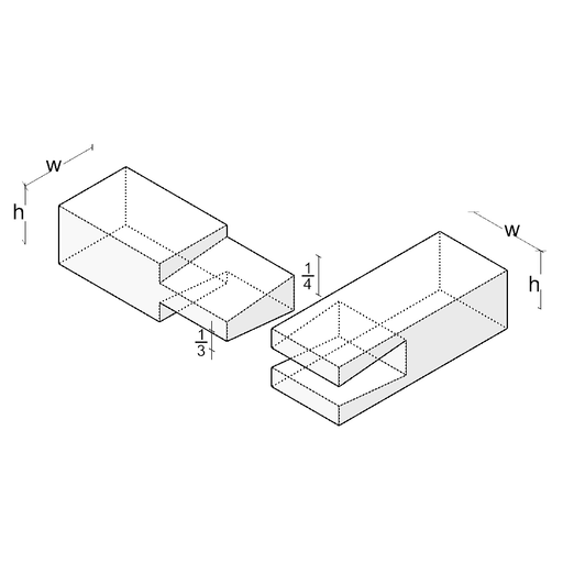 The through dovetail tenon joint is an L-joint where a dovetail-shaped tenon is inserted through a corresponding mortise in the second member. The connection combines the form of the dovetail with the through-tenon principle, creating a tension-resistant corner joint without additional wooden fasteners. The trapezoidal widening of the tenon prevents withdrawal in one direction, while the through-insertion enables a visible and verifiable connection.